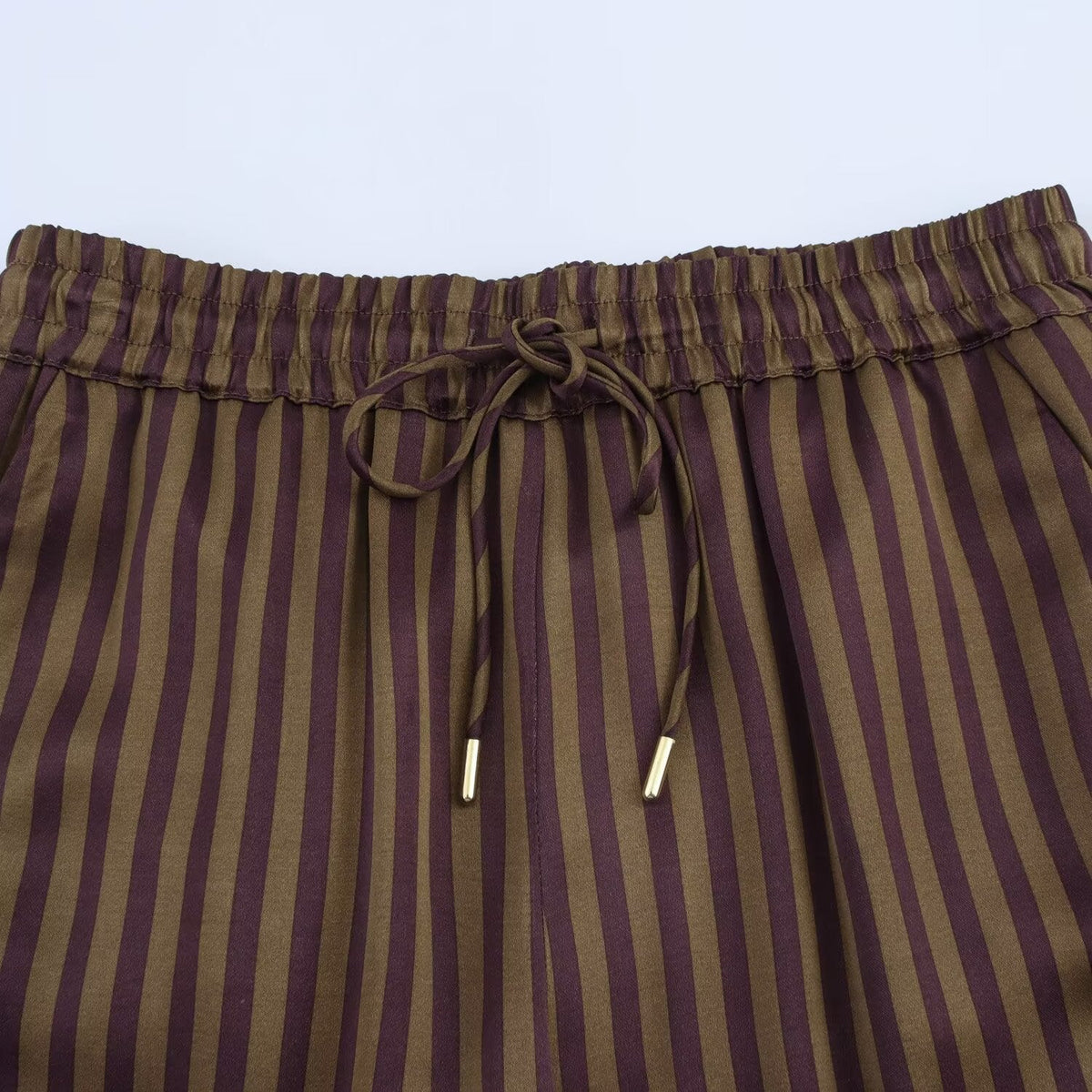 Das dezente Braun mit Streifenmuster verleiht dem Outfit einen eleganten Charakter, während der gerade Schnitt der Hose für eine schlanke Silhouette sorgt. Perfekt für Büro, Freizeit oder lässig-elegante Alltagslooks – ein vielseitiger Style für jede Gelegenheit.