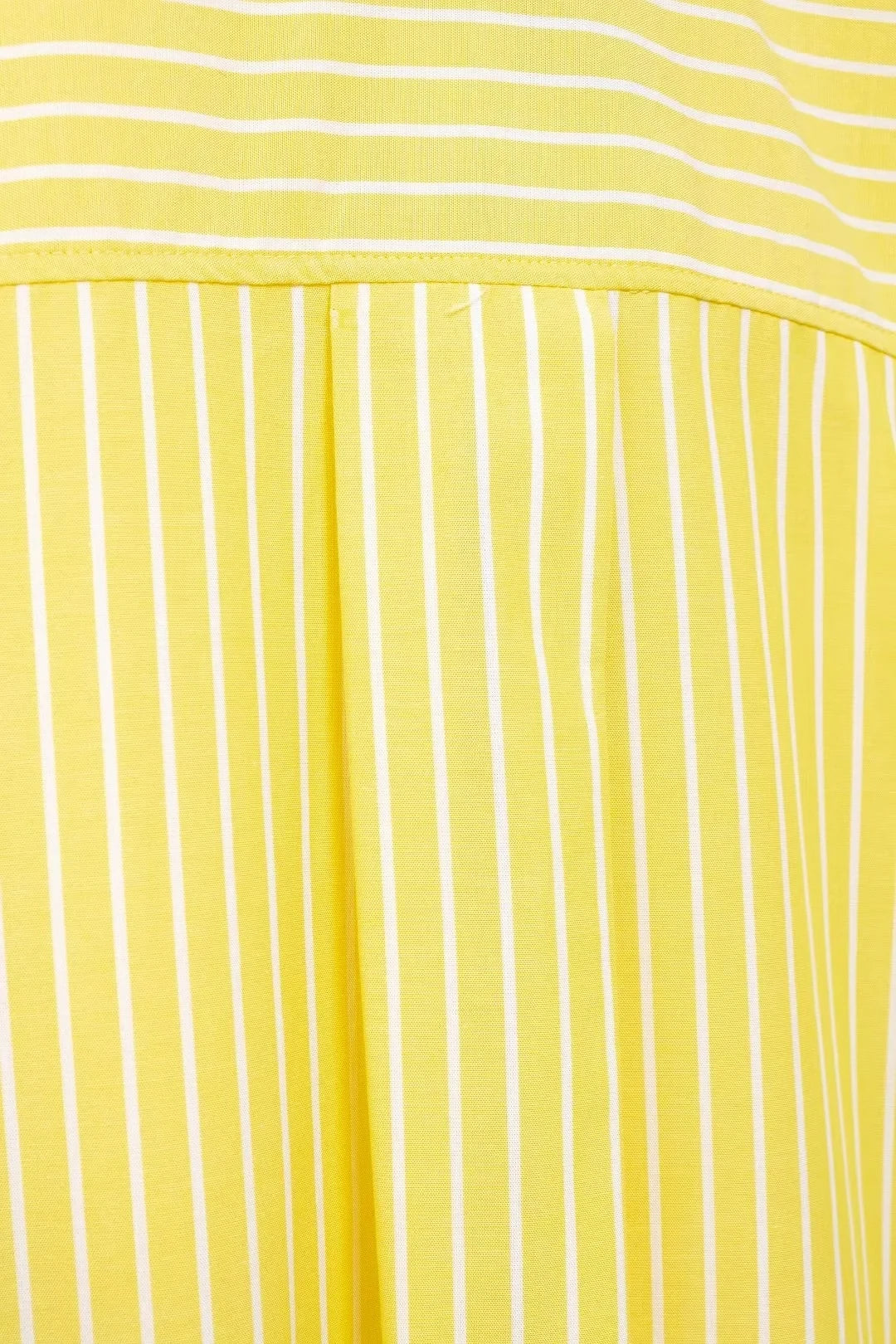 Beschreibung: Erleben Sie ultimativen Komfort und stilvolle Gemütlichkeit mit unserem gestreiften Pyjama-Set in fröhlichem Gelb. Dieses zweiteilige Set, bestehend aus einem langärmeligen Hemd und einer passenden Hose, ist perfekt für entspannte Abende zu Hause oder als lässiges Loungewear-Outfit. Das weiche, leichte Material mit dezentem Streifenmuster sorgt für ein angenehmes Tragegefühl auf der Haut. Das Hemd mit Knopfleiste und Kragen sowie die Hose mit elastischem Bund und weitem Bein bieten eine bequeme Passform und optimale Bewegungsfreiheit. Ob zum Schlafen, Relaxen oder für einen entspannten Brunch – dieses Set vereint Stil und Gemütlichkeit auf perfekte Weise.