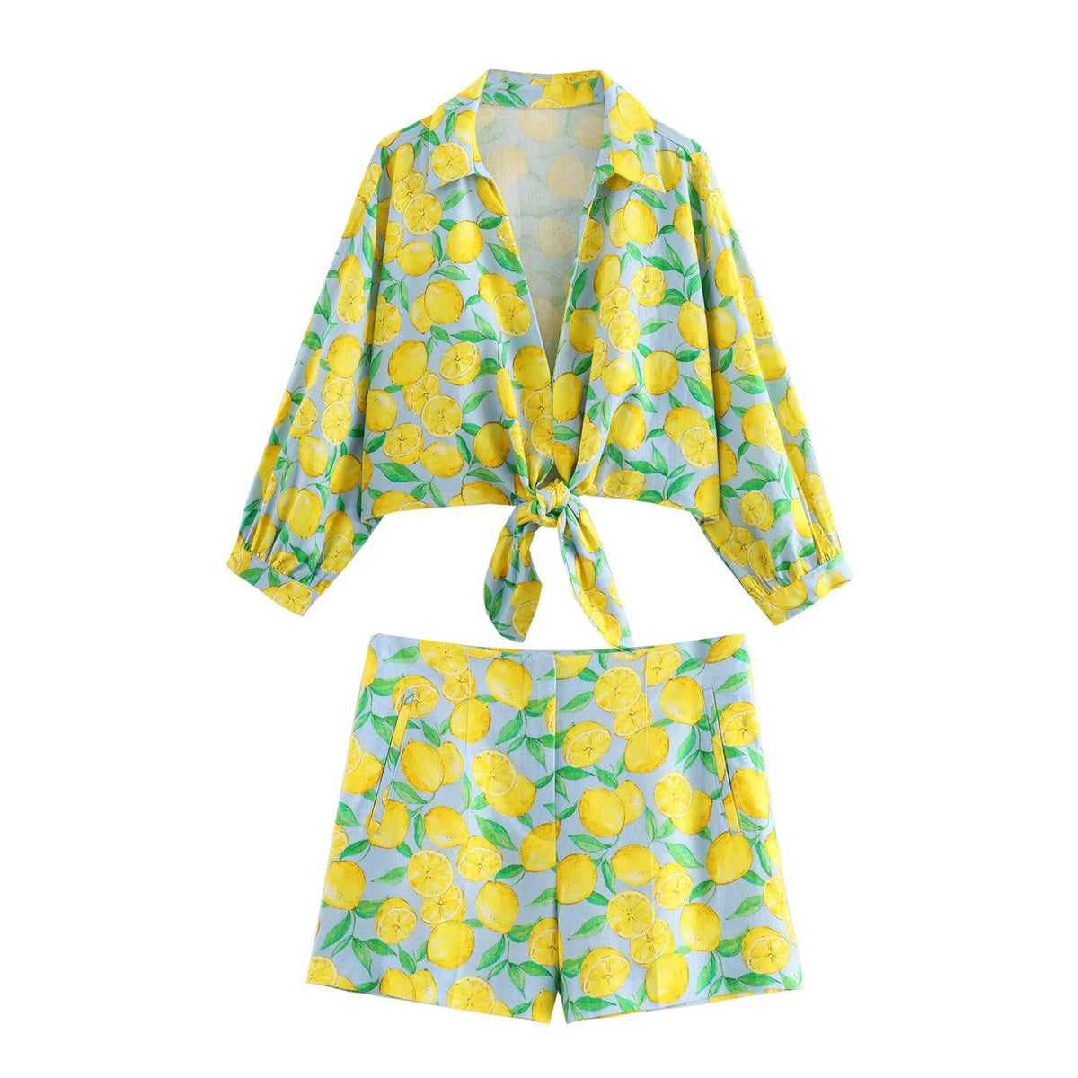 Beschreibung: Bringen Sie Sonnenschein in Ihre Garderobe mit unserem entzückenden zweiteiligen Zitronenprint Set! Dieses fröhliche Ensemble besteht aus einem stylischen, vorne geknoteten Hemd mit halblangen Ärmeln und passenden High-Waist Shorts. Das lebhafte Muster aus strahlenden Zitronen auf einem hellen Hintergrund (Gelb oder Hellblau) versprüht sofort gute Laune und ist perfekt für den Sommer. Das leichte und luftige Material sorgt für angenehmen Tragekomfort an warmen Tagen. Ideal für den Strand, einen entspannten Brunch oder einfach, um Ihrem Alltags-Look eine erfrischende und verspielte Note zu verleihen. Ein absolutes Must-have für alle, die den Sommer lieben!