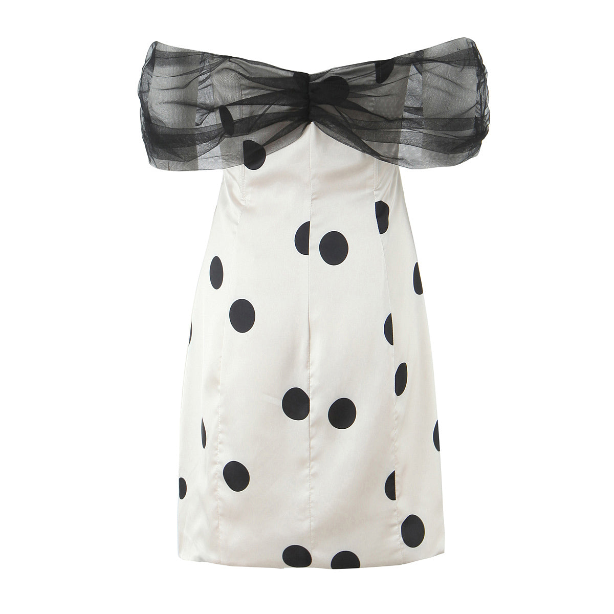 Beschreibung: Verleihen Sie Ihrem Auftritt einen Hauch von Retro-Glamour mit unserem eleganten Polka Dot Mini-Kleid. Dieses charmante Kleid kombiniert einen klassischen, schmeichelhaften Schnitt mit modernen Akzenten. Das Hauptteil des Kleides ist in einem hellen Cremeton gehalten und mit verspielten schwarzen Polka Dots verziert, die für einen zeitlosen Charme sorgen. Das Highlight ist der auffällige Off-Shoulder-Ausschnitt aus gerafftem schwarzem Tüll, der dem Kleid eine luxuriöse und zugleich sinnliche Note verleiht. Die Knopfleiste auf der Vorderseite rundet das Design ab. Ideal für Cocktailempfänge, Dinner-Dates oder Partys, bei denen Sie einen unvergesslichen Eindruck hinterlassen möchten.
